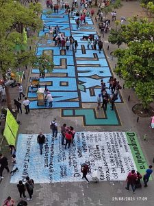 El MOVICE (Movimiento de Crímenes de Estado) organizó un homenaje sobre las personas víctimas de desaparición forzada al frente del Parque Explora, donde pintaron un mural grande que dice: “¿Lxs desaparecidxs nuestrxs dónde están?”. Este 30 de agosto de 2021 se cumple el día internacional de los desaparecidos y por eso los familiares no desfallecen y siguen esperando que se esclarezcan los hechos.