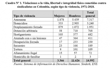 Colombia es el país más agreste para ejercer libremente el sindicalismo, es lo que refleja el informe de la Escuela Nacional Sindical presentado a la Comisión para el esclarecimiento de la verdad en agosto del presente año, el cual se llama: “Violencia antisindical en Colombia: entre el exterminio y la violación a la libertad sindical. Informe sobre patrones y contextos explicativos de la violencia antisindical en Colombia en el marco del conflicto armado”. Con alrededor de 15 mil ataques documentados a este sector y más de 3 mil homicidios.